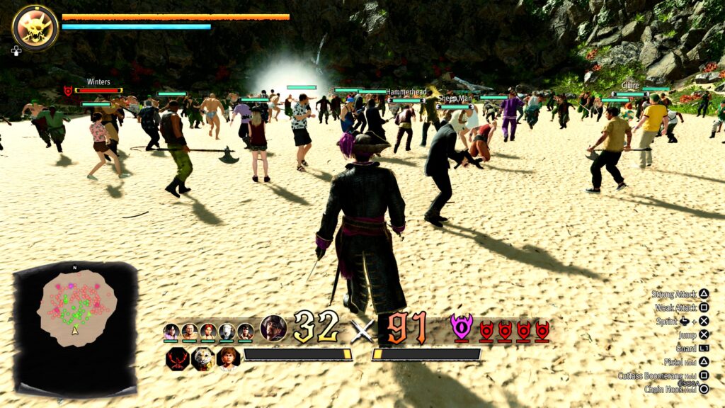 The crew fights are then about as chaotic as possible. If the normal combat gameplay is the tight Yakuza experience, this goes in the complete opposite direction. Crew fights are pure chaos. You don’t really need to play carefully. You don’t really need to focus on specific targets. You don’t really need to aim at anything. You just run in with your people, spam attacks, and watch pure chaos unfold. As a pure pirate fantasy it nails a lot of what I want in terms of building a crew and going in on anything as a whole.