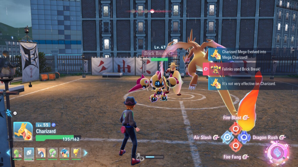 This is then compounded by the large amount of trainer battles that the game pushes you into. If Arceus was about collecting and not having trainer battles as much as possible, this is about as far opposite as you can get. There are entire segments of the game loop dedicated to trainer battles, where sections of the city are cordoned off each night just for trainers to battle in. This is where you get a lot of mileage out of having a traditionally setup party to counter as many Pokemon types as possible, but it’s also where I have my second real problem with the combat system.